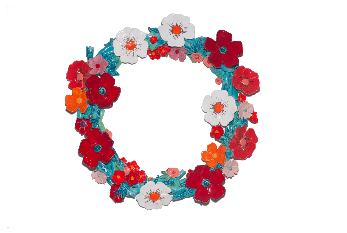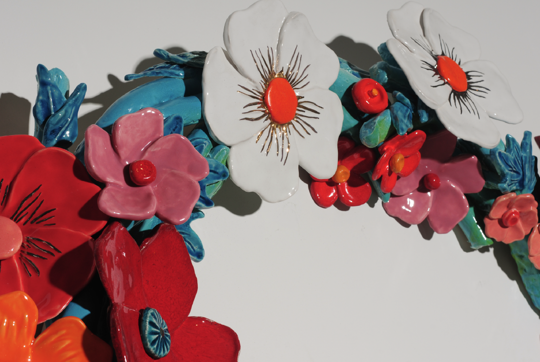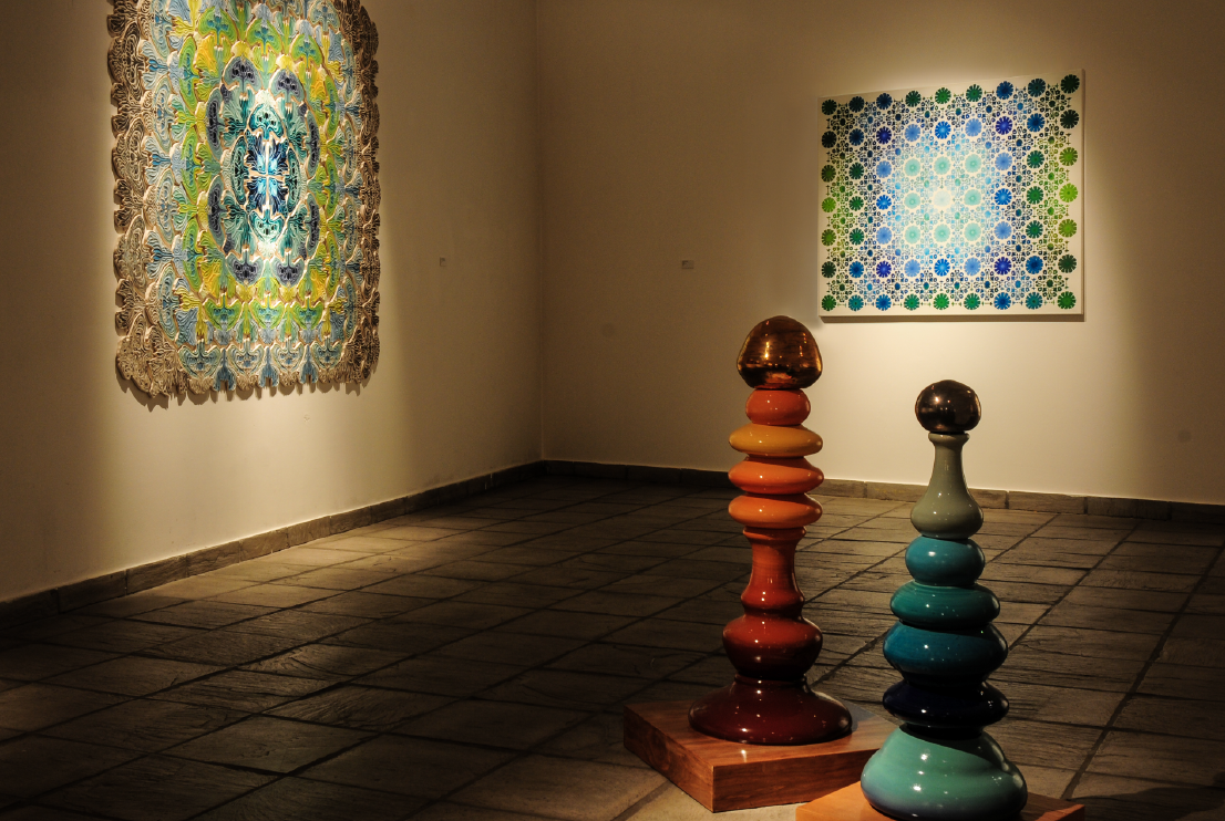 Motivo para pie de lámpara, 2011. Cerámica esmaltada con lustre de oro y platino. 100 x 100 cm.