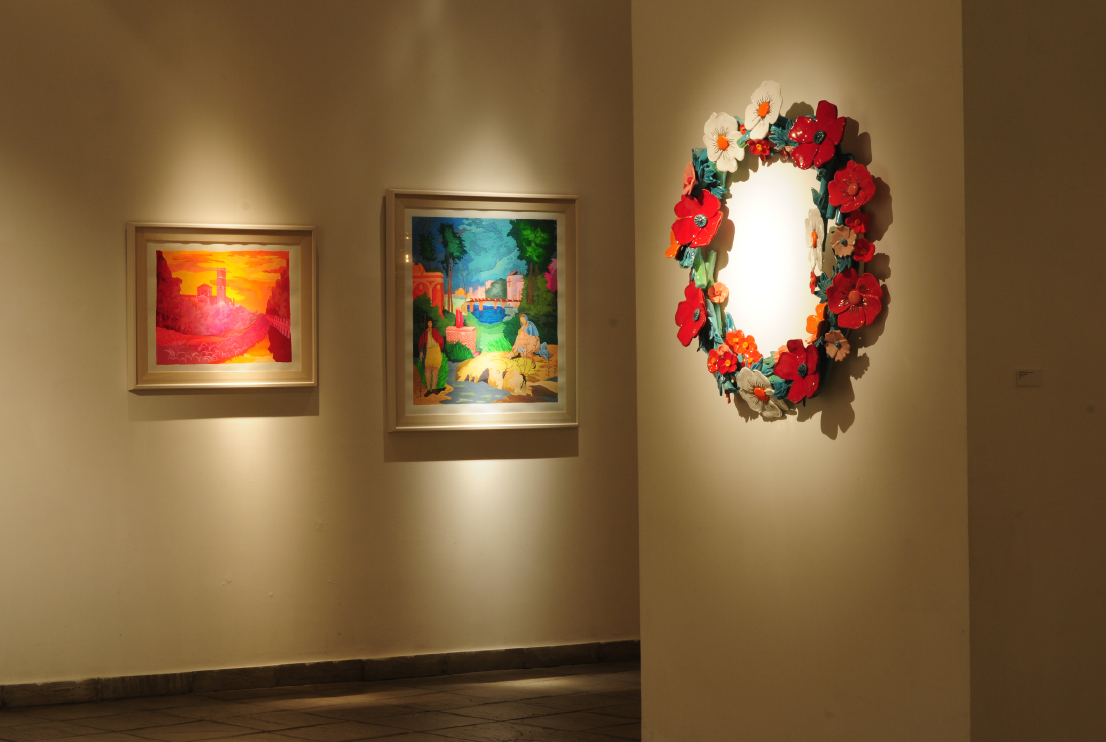 Injerto de aproximación lateral, 2011. Cerámica esmaltada con lustre de oro. 60 x 80 cm.