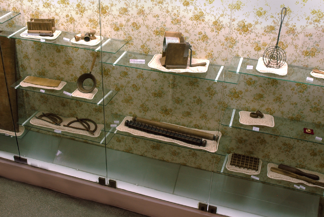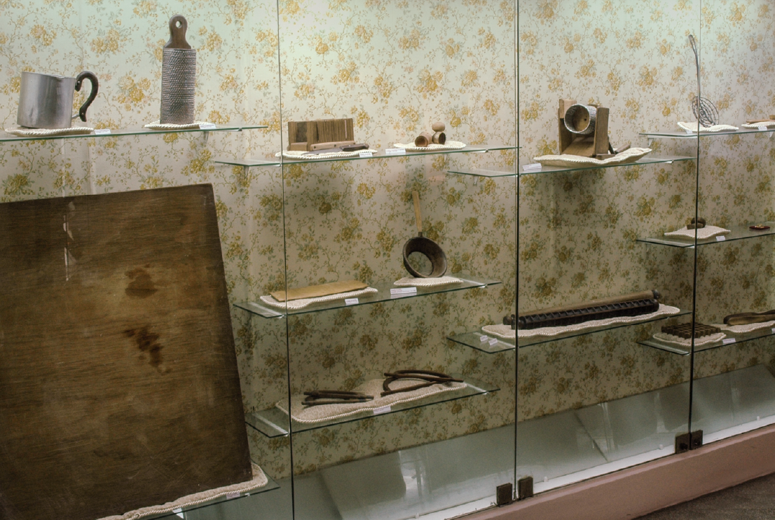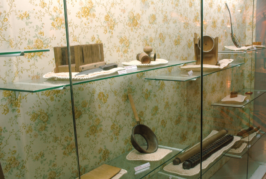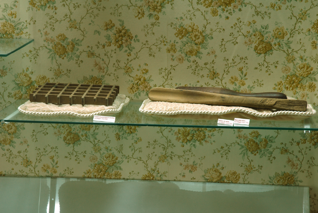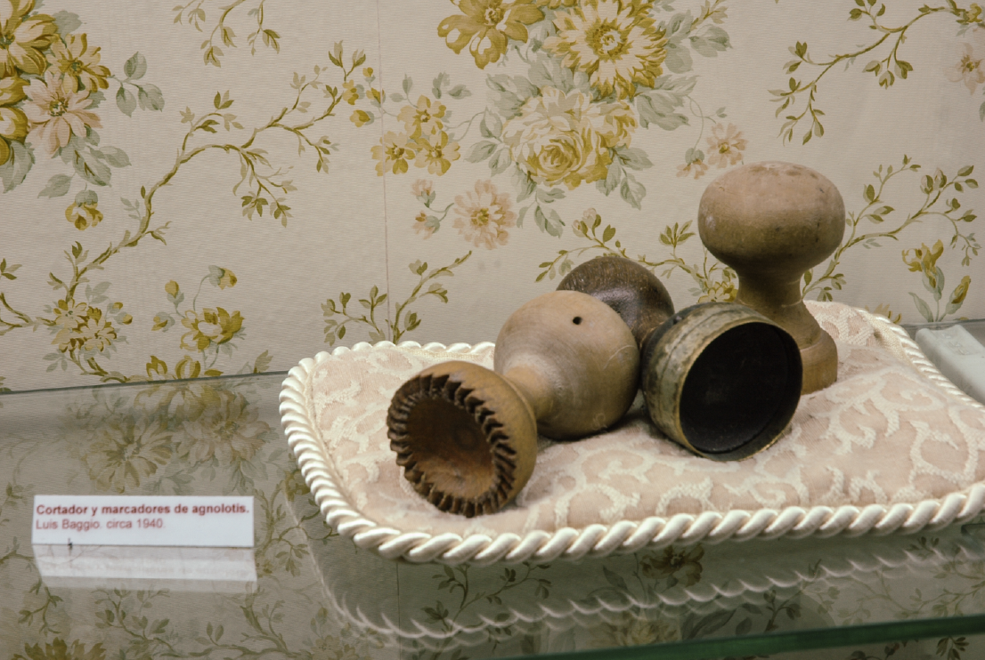 La razón del gourmet (detalle: Luis Baggio, marcador para ravioles, maza y espumadera para leche), 2007. Instalación. Medidas variables.