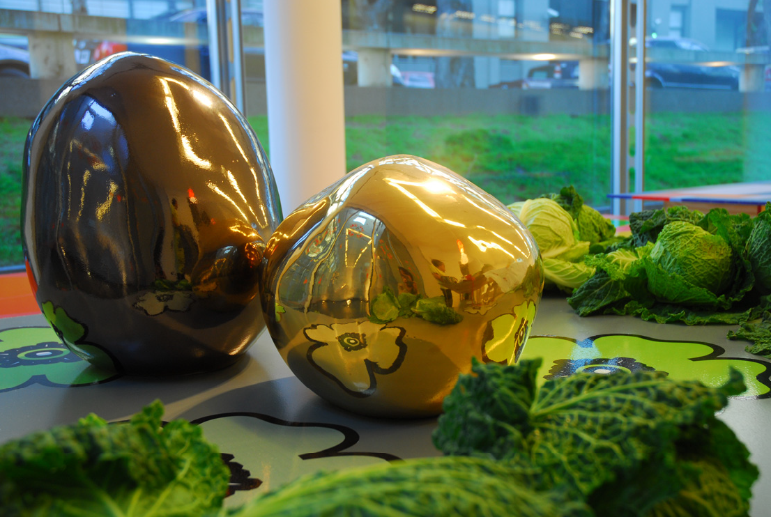 Reserva calórica, 2008. Cerámica esmaltada con lustre de oro. 100 x 100 cm.