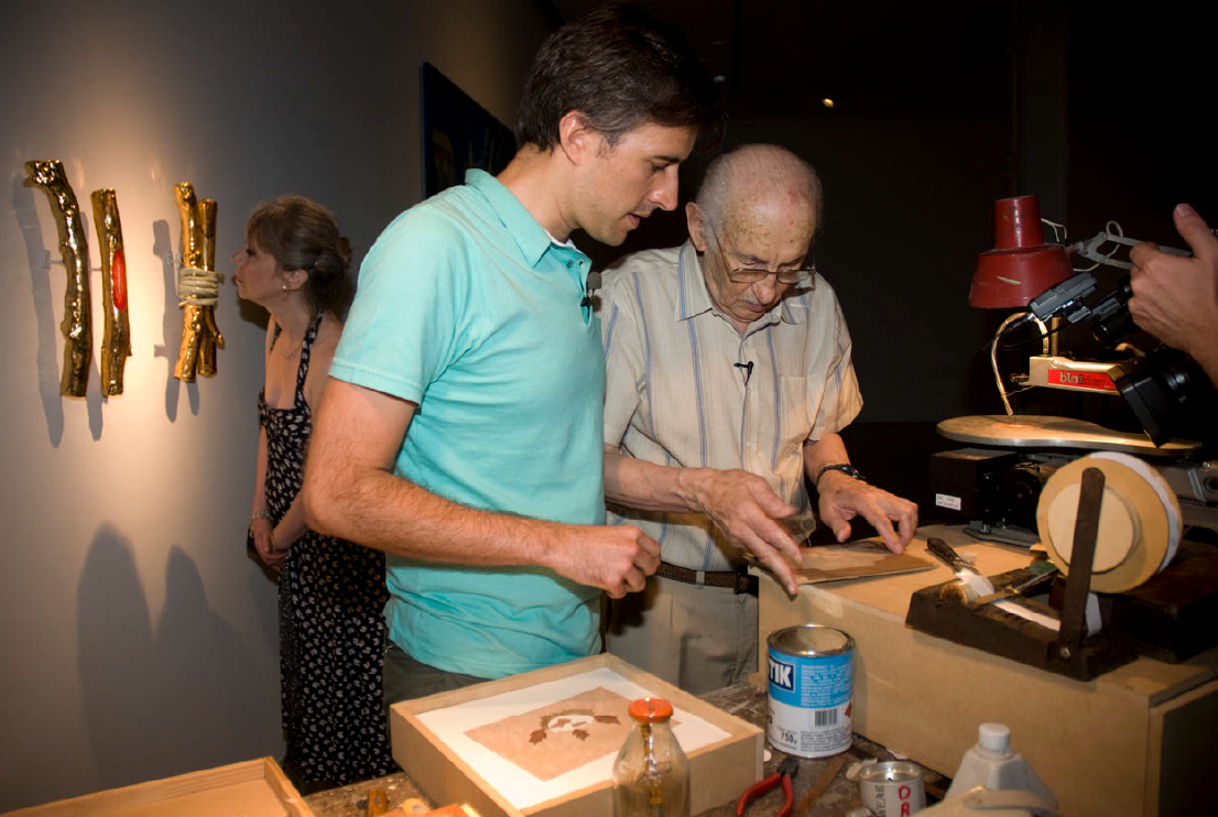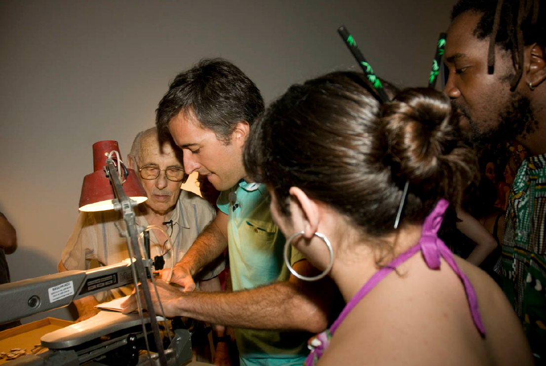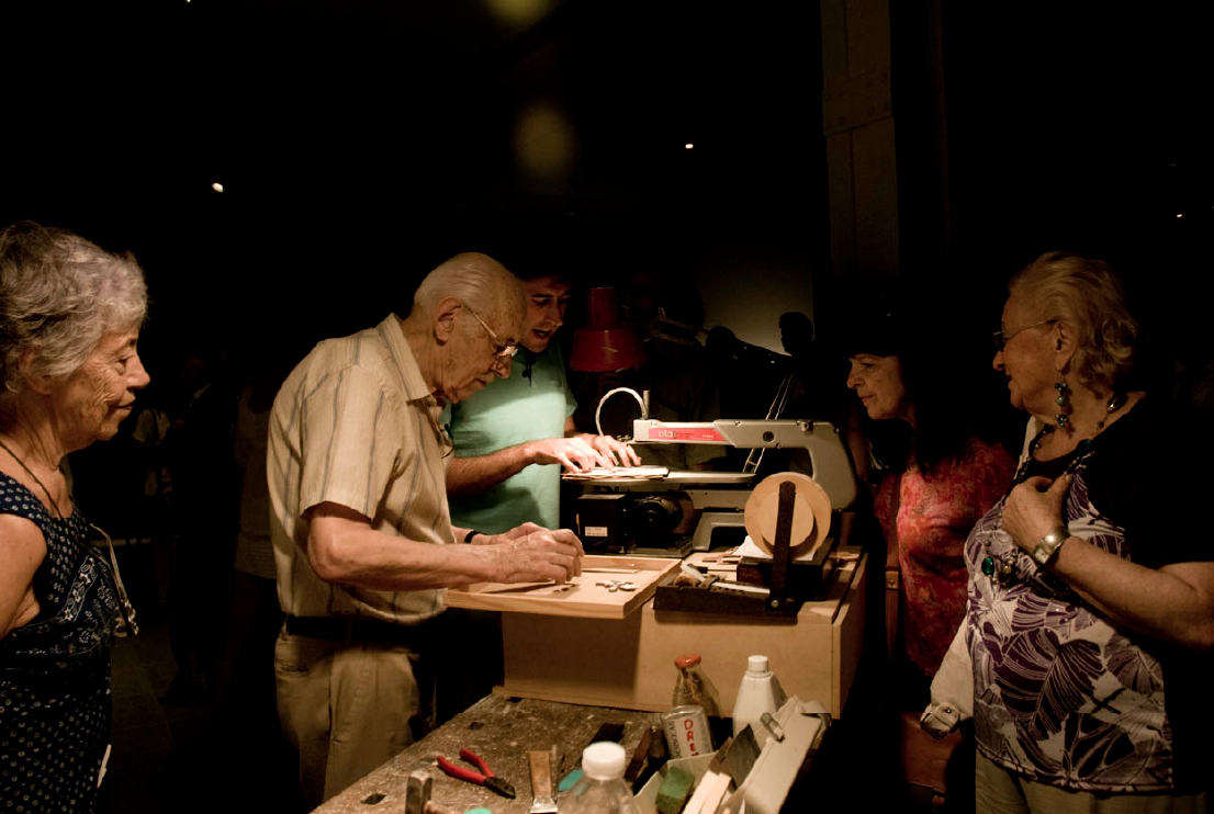 Rosa en marquetería, 2010. Museo de Arte Moderno de Buenos Aires. Performance junto a Julio Ratuschny.