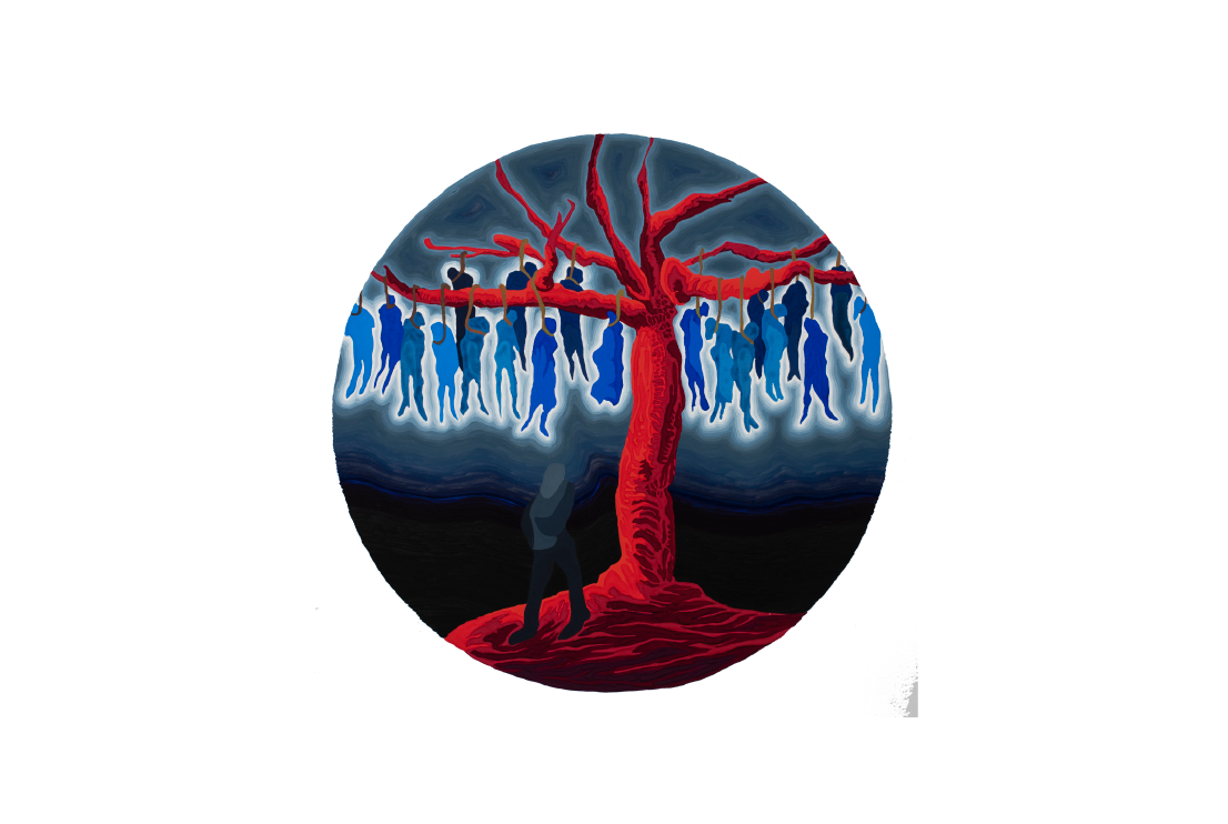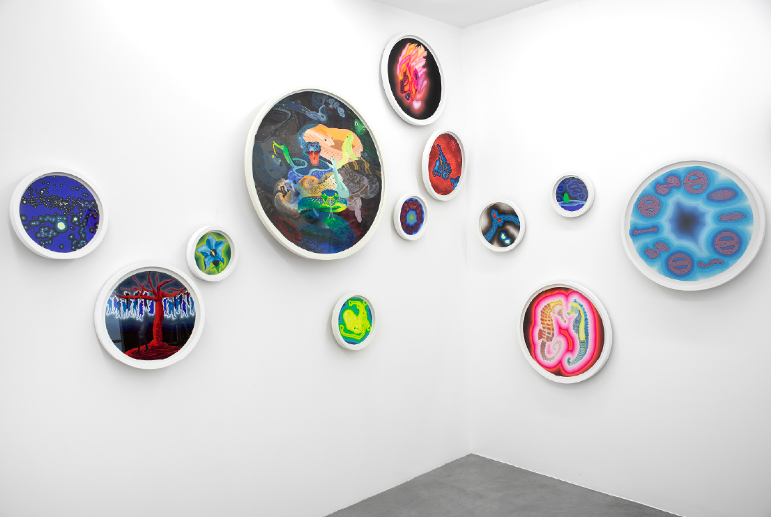Los mareados, 2024. Gouache sobre papel. Diámetro 50 cm.