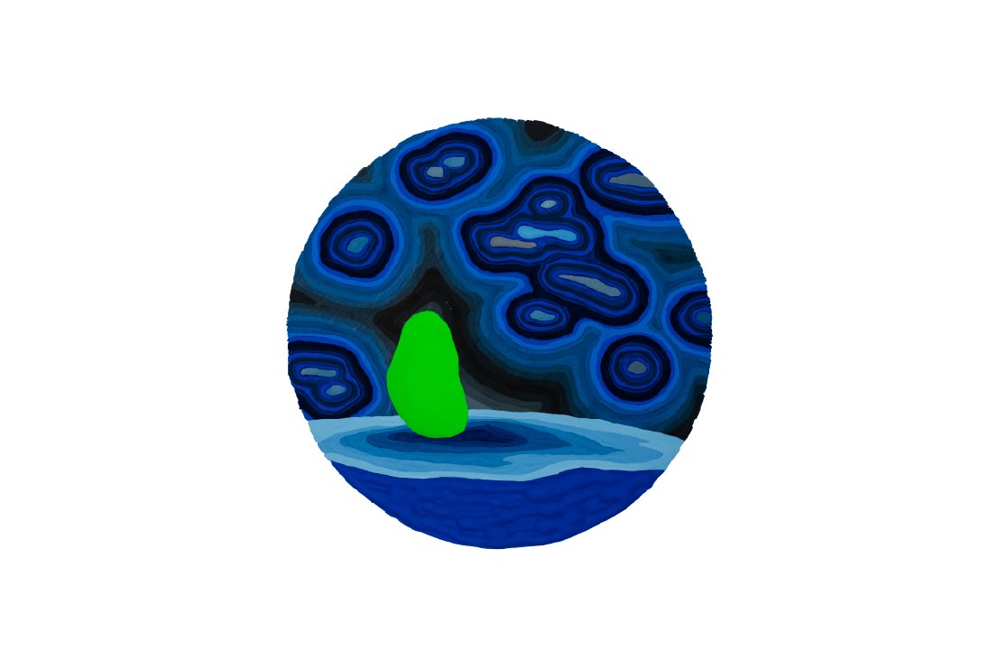 Cuando ya me empiece a quedar solo, 2024. Gouache sobre papel. Diámetro 28 cm.