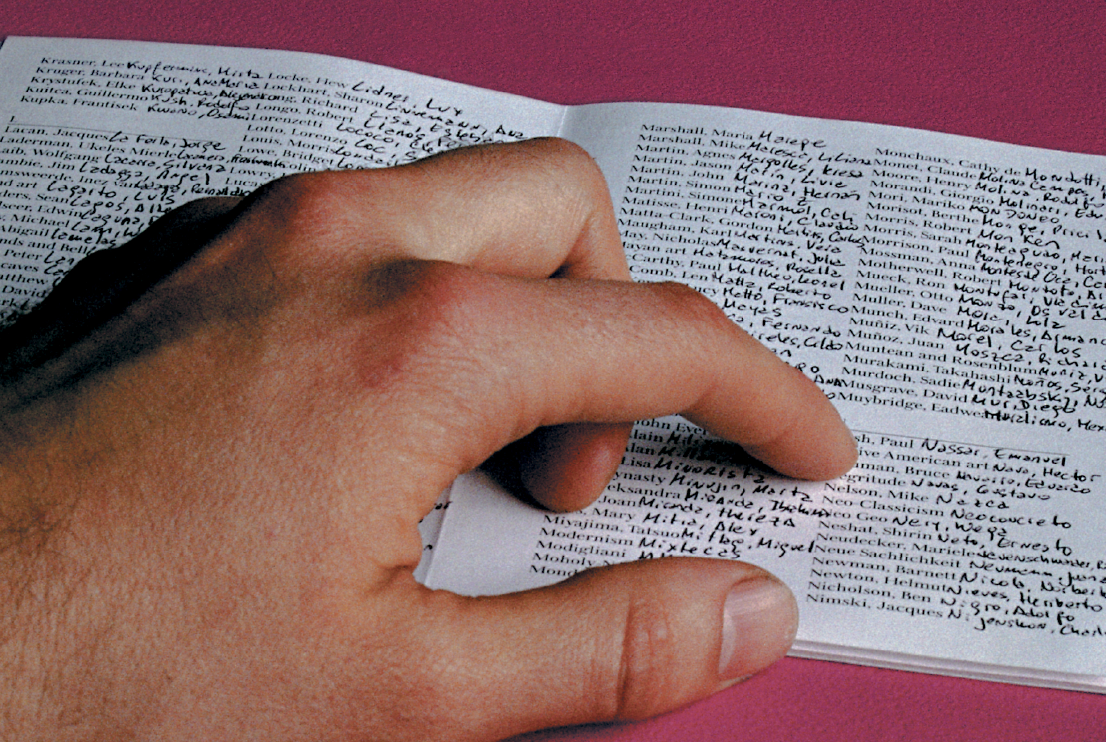 Lo dado exalta tres platos de alimentos. Calcadas en bronce, las comidas servidas por sus abuelas y su madre se exponen como nutrientes inmortalizados que paradójicamente no se podrán comer. Provisiones de las madres sólidamente sacralizadas que, no obstante, perduran porque fluyen en la sangre del artista, son su memoria constitutiva. Sin embargo, en los tiempos que corren, convertir al alimento en una especie de pieza de museo carga con la contundencia de evidenciar la era del hambre. La canonización de los alimentos, la detención en el tiempo de su proceso nutritivo –que fue resistida por la propia putrefacción de los ingredientes al momento de su realización– contrasta con la eterna cocción de la sopa familiar que aromatiza el ambiente. Con Agar-agar. Caldo de cultivo instala la dimensión procesual que se relaciona con su eterna bufanda. Baggio declama la construcción en permanencia, repele por falso lo que pretende establecerse de una vez y para siempre. Sobre un soporte de adobe hierve sus ideas. Los vapores contaminan la obra próxima que da nombre a la muestra, cuyo pedestal hibridizado con guarda neoclásica es contrapunto del de adobe, a la vez que se vincula con el que sostiene la bufanda. Este complejo proceso de apropiaciones y selección de tradiciones se materializa en la intervención sobre el librito de Emma Kay. Frente a la catalogación parcial de la artista inglesa, Baggio elige repararla entrelazando otros mil nombres a mano. No esconde su propia parcialidad, en tanto sabe de los propios riesgos del relato sobre ‘lo latinoamericano’. Su gesto subraya omisiones y despliega otras, juega con los límites de las memorias construidas en diferentes latitudes. En el mismo sentido, quedan en claro las contradicciones entre el incomparable acceso a la información que tienen los artistas de uno y otro mundo que es, por cierto, indirectamente proporcional a su uso.