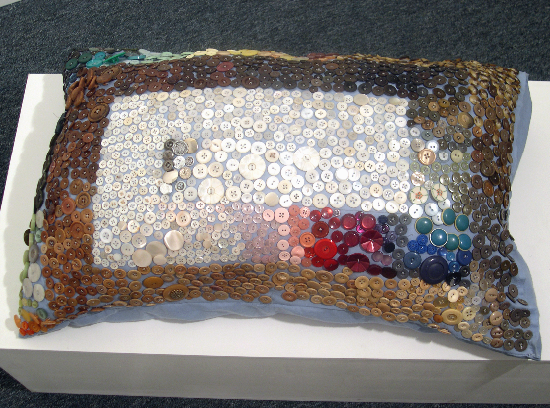 Sueño americano, el camino del abuelo, 2004. Almohada y botones. 30 x 50 cm.