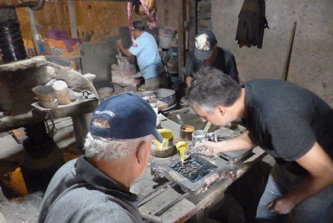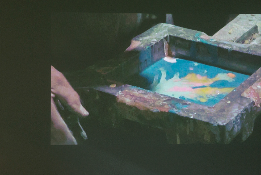 La equidad. Las artes aplicadas o exentas se igualan. La muestra tiene la virtud de desarmar jerarquías o, al menos, de ponerlas en cuestión. Jerarquías difusas entre los objetos utilizados y puestos en mirada: la gran obra terminada a la par de los bocetos y moldes que se enmarcan; de las herramientas que transmutan en joyas doradas; de los primeros intentos y las pruebas de color que son también delicados cuadros; de los descartes que reingresan a la sala; de los accidentes del proceso de producción que se tensan sobre bastidores inaugurando una subgalería de arte apócrifa. Pero también se exponen relaciones de paridad entre los sujetos en juego, entre sus intercambios de conocimientos y experiencias de vida. La generosidad del maestro artesano con el aprendiz artista, en directa proporción a los secretos revelados por este a los visitantes de la exposición. Desoyendo la potestad del savoir-faire, casi burlándose del individualismo del do it yourself y despojándose del exhibicionismo distante de los tutoriales, el artista aprende y enseña. Baggio nos muestra la belleza del trabajo, como una criatura vulnerable a resguardar. Como lo hicieron Don Moisés y Don Julio, nos comparte una trabajosa belleza, arte de tracción a sangre en tiempos de acelerada automatización.