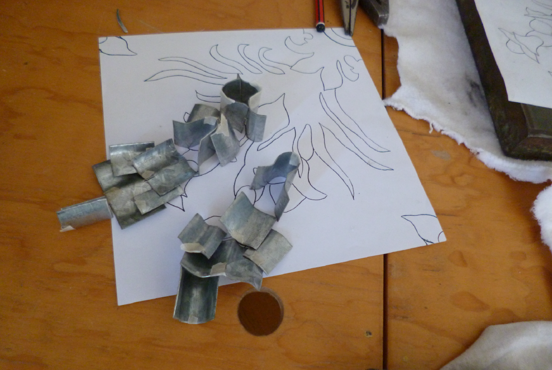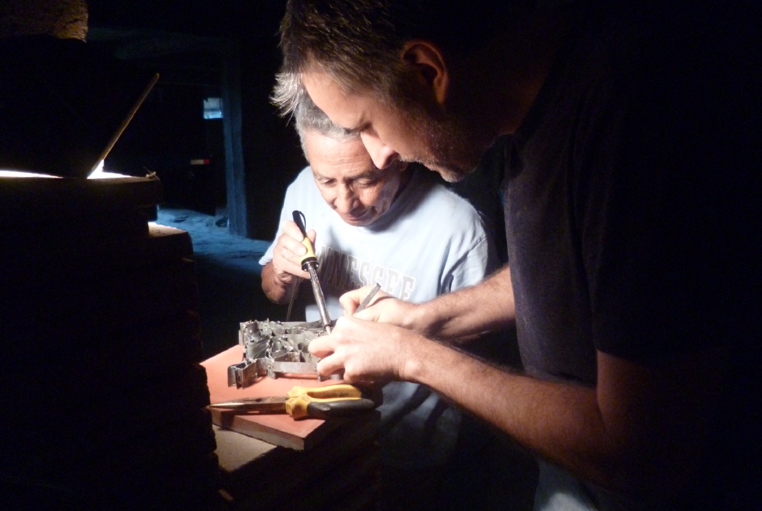 Matrices para piso calcáreo, 2018. Zinc, estaño y madera. 41 x 60 cm.