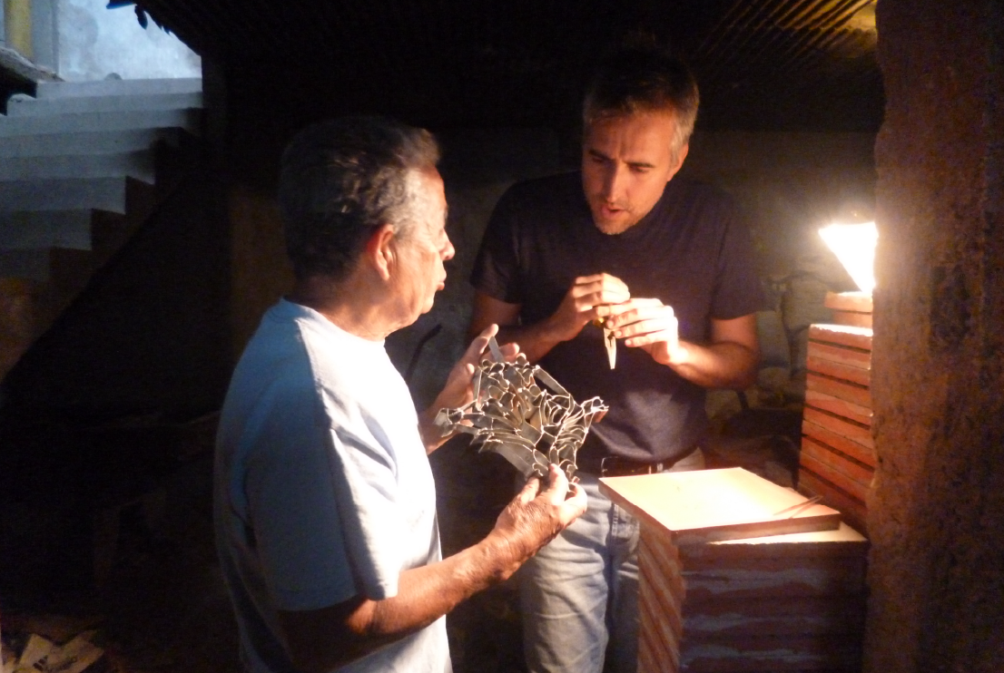 Las herramientas de Moisés, 2018. Cerámica esmaltada con lustre de oro. 150 x 200 cm.