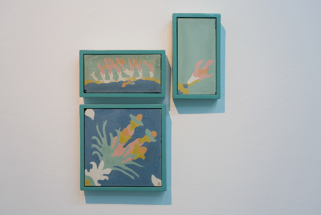 Primer intento, 2018. 3 baldosa calcáreas y madera. 50 x 40 cm.