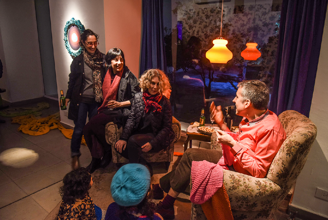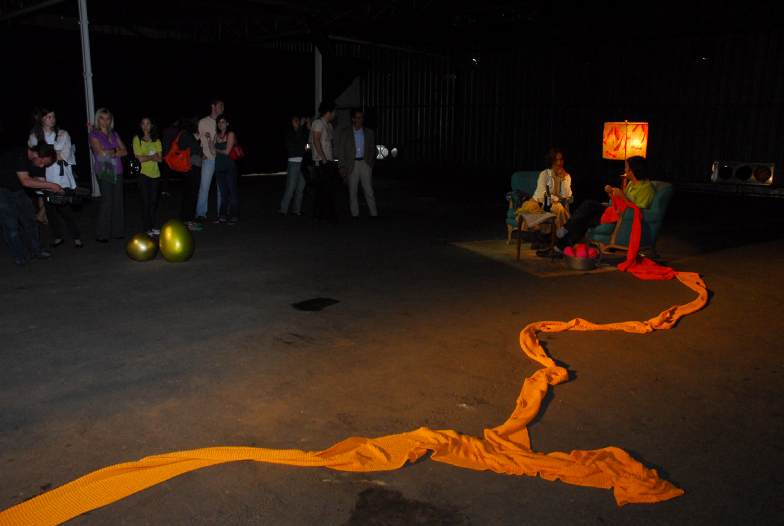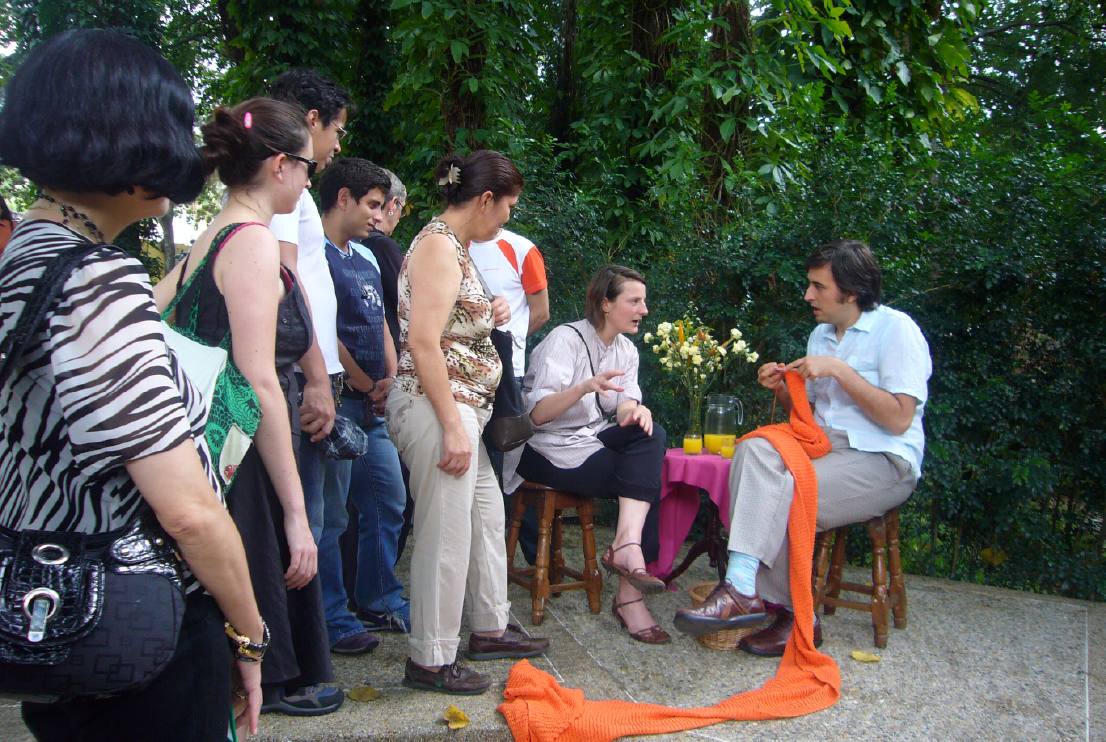 Conversación, 2003. La noche de la lana, local de economía solidaria en asamblea popular del barrio de Saavedra, Buenos Aires. Performance.