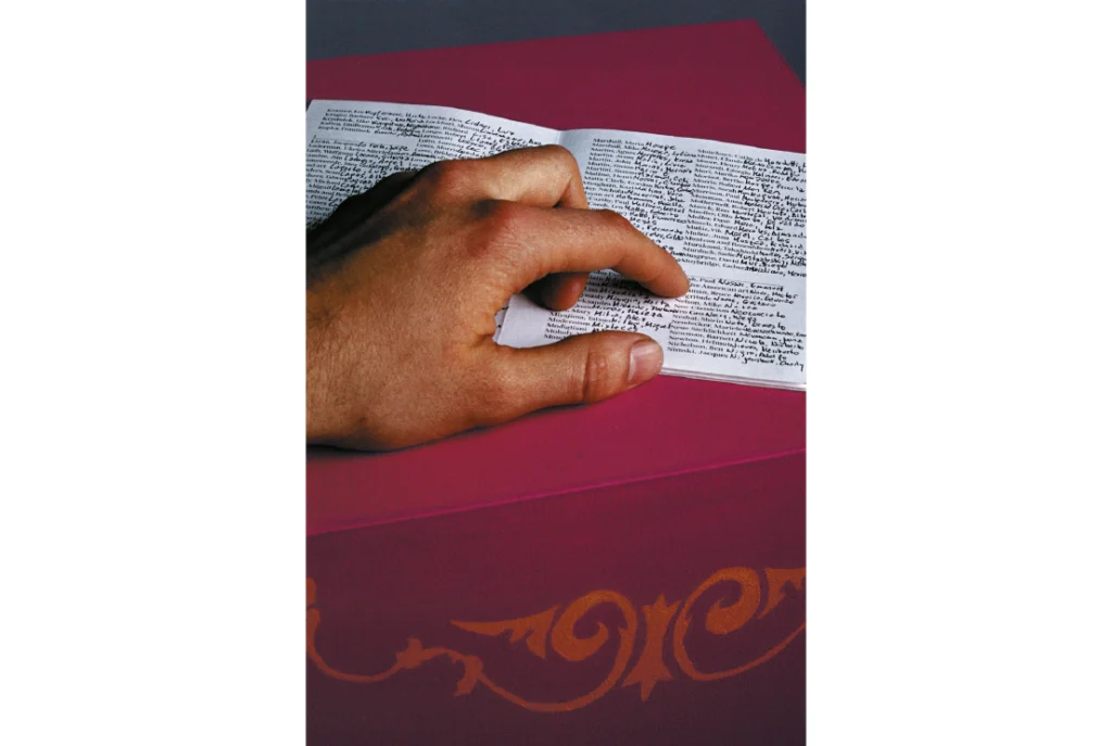 Lo dado exalta tres platos de alimentos. Calcadas en bronce, las comidas servidas por sus abuelas y su madre se exponen como nutrientes inmortalizados que paradójicamente no se podrán comer. Provisiones de las madres sólidamente sacralizadas que, no obstante, perduran porque fluyen en la sangre del artista, son su memoria constitutiva. Sin embargo, en los tiempos que corren, convertir al alimento en una especie de pieza de museo carga con la contundencia de evidenciar la era del hambre. La canonización de los alimentos, la detención en el tiempo de su proceso nutritivo –que fue resistida por la propia putrefacción de los ingredientes al momento de su realización– contrasta con la eterna cocción de la sopa familiar que aromatiza el ambiente. Con Agar-agar. Caldo de cultivo instala la dimensión procesual que se relaciona con su eterna bufanda. Baggio declama la construcción en permanencia, repele por falso lo que pretende establecerse de una vez y para siempre. Sobre un soporte de adobe hierve sus ideas. Los vapores contaminan la obra próxima que da nombre a la muestra, cuyo pedestal hibridizado con guarda neoclásica es contrapunto del de adobe, a la vez que se vincula con el que sostiene la bufanda. Este complejo proceso de apropiaciones y selección de tradiciones se materializa en la intervención sobre el librito de Emma Kay. Frente a la catalogación parcial de la artista inglesa, Baggio elige repararla entrelazando otros mil nombres a mano. No esconde su propia parcialidad, en tanto sabe de los propios riesgos del relato sobre ‘lo latinoamericano’. Su gesto subraya omisiones y despliega otras, juega con los límites de las memorias construidas en diferentes latitudes. En el mismo sentido, quedan en claro las contradicciones entre el incomparable acceso a la información que tienen los artistas de uno y otro mundo que es, por cierto, indirectamente proporcional a su uso.