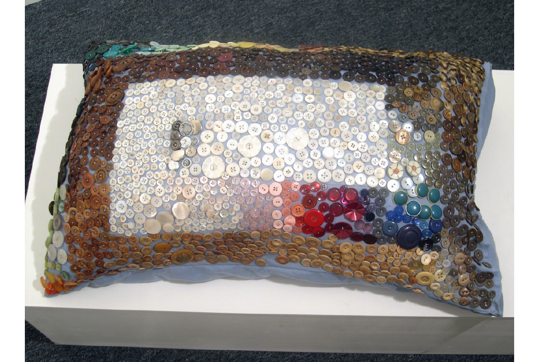 Sueño americano, el camino del abuelo, 2004. Almohada y botones. 30 x 50 cm.