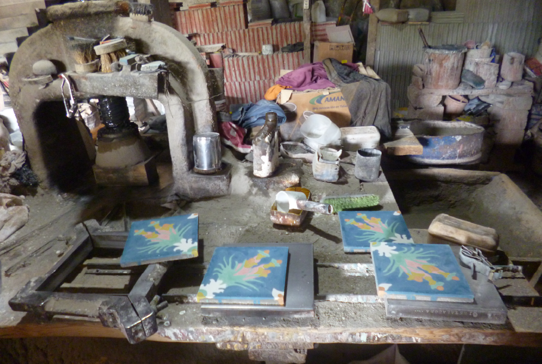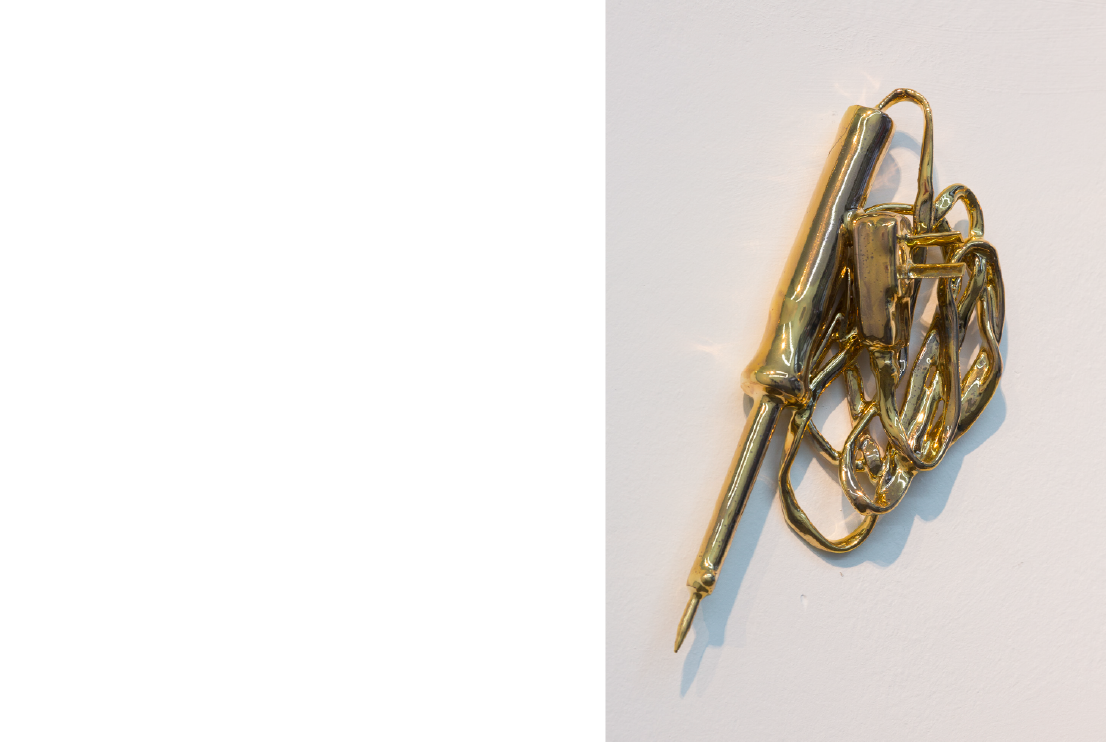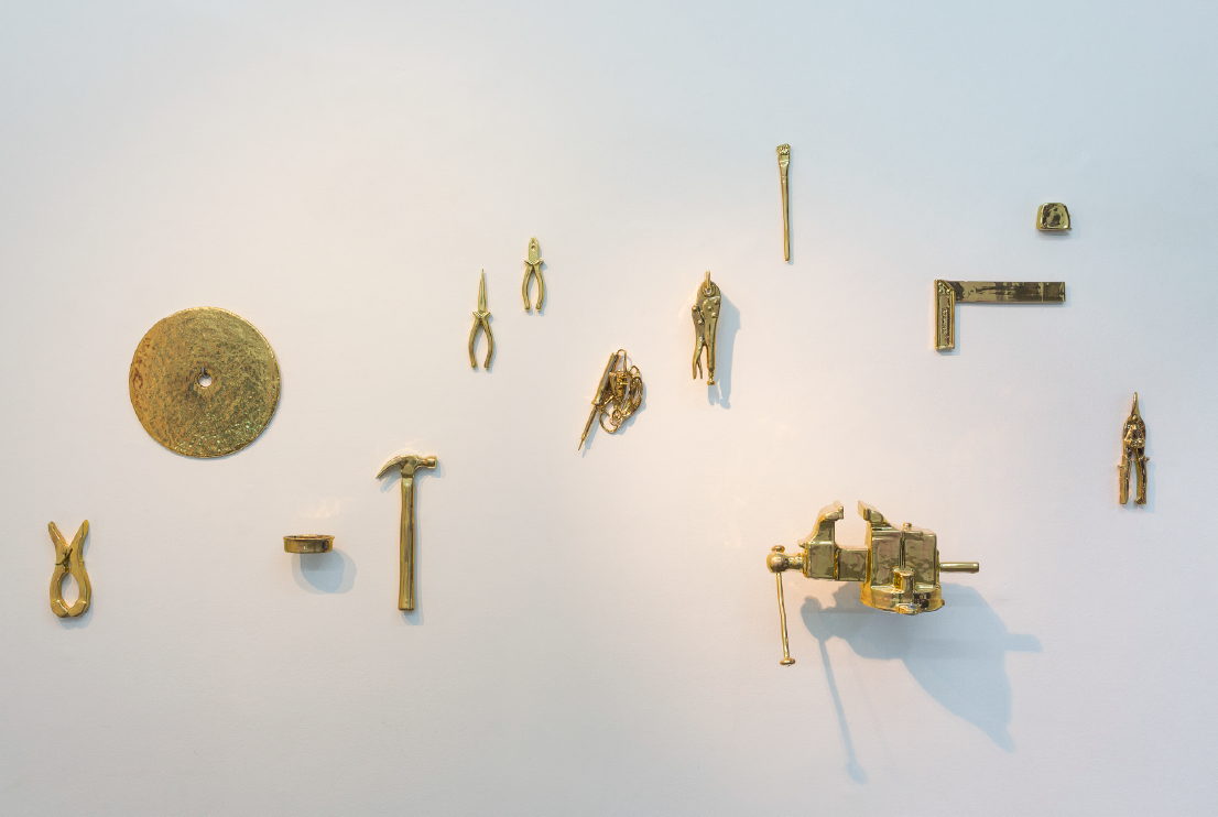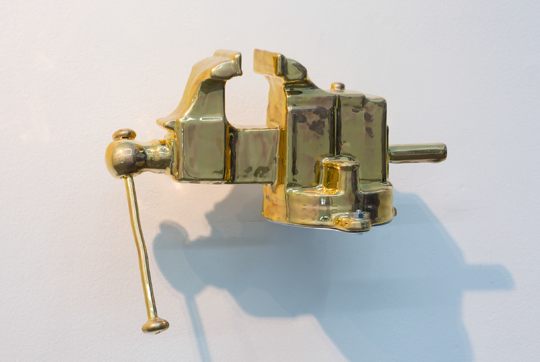 Las herramientas de Moisés, 2018. Cerámica esmaltada con lustre de oro. 150 x 200 cm.