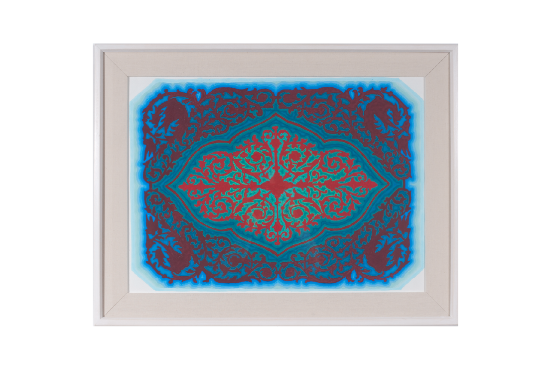 Motivo para pie de lámpara, 2011. Cerámica esmaltada con lustre de oro y platino. 100 x 100 cm.