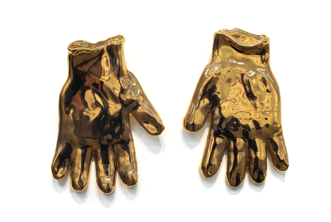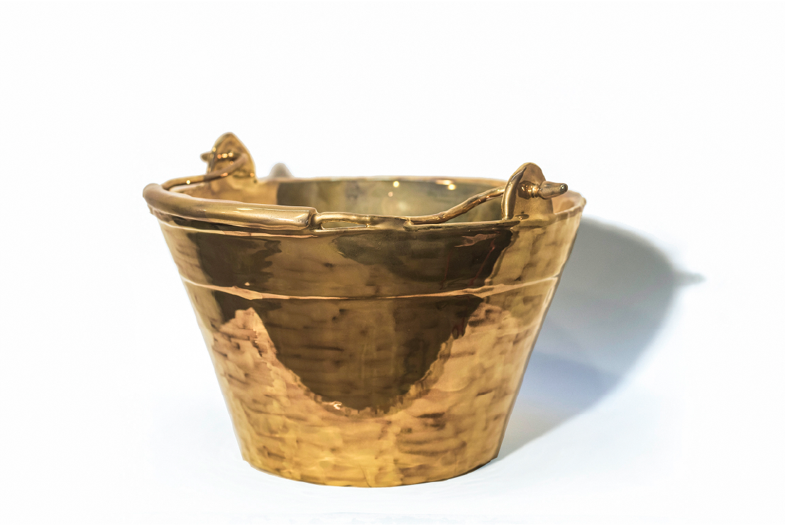 La pampa se ve desde adentro, 2017. Cerámica esmaltada con lustre de oro. 150 x 500 cm.