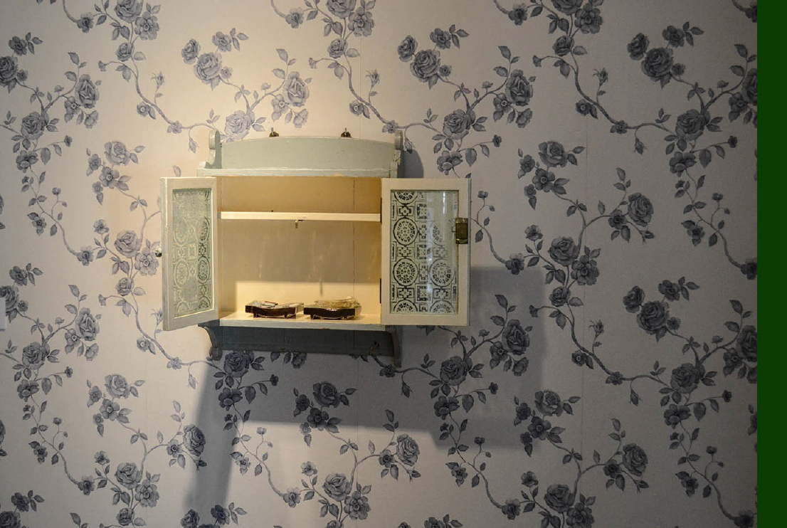 Mueble, 2004. Madera, vidrio y cerámica. 50 x 70 cm.