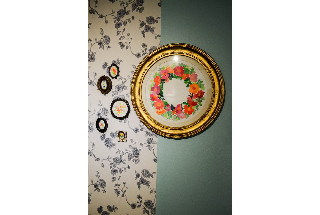 Motivos para pastilleros, platos y tazas, 2008. Gouache sobre papel. 100 x 150 cm. // Motivo para lámina, 2011. Gouache sobre papel. Diámetro 60 cm.