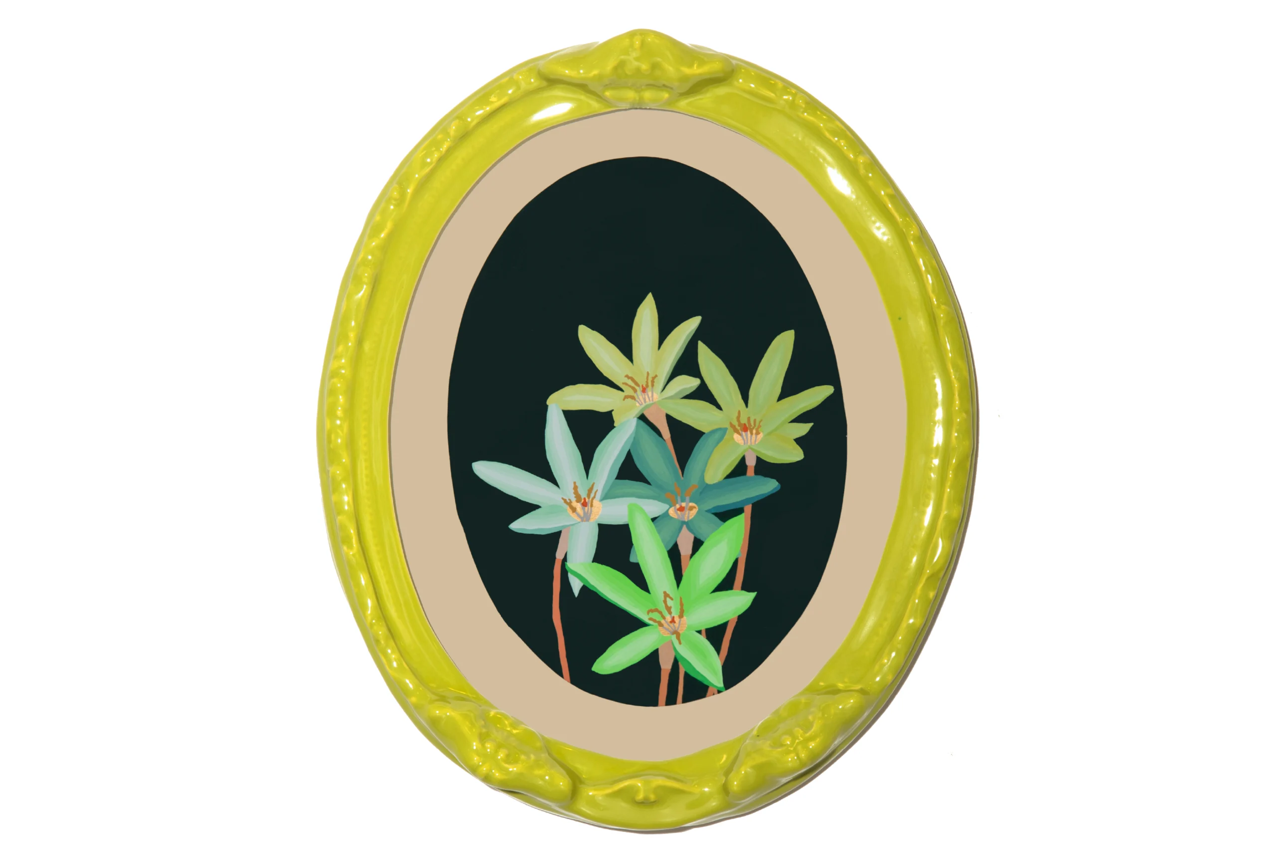 Abrirse paso en la soledad (lirito amarillo), 2015. Gouache sobre papel y cerámica esmaltada. 60 x 40 cm.