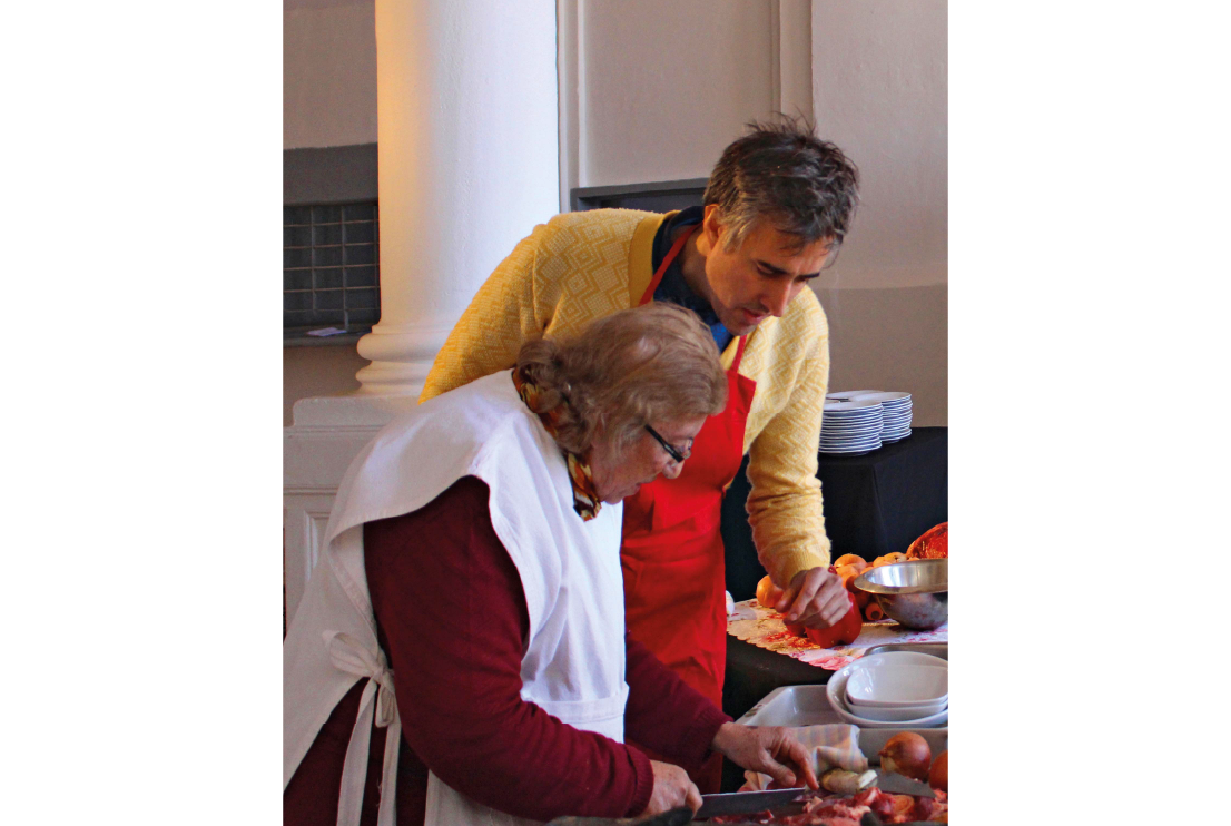 Fideos de espinaca con estofado, 2006. Espacio Cultural La Ochava, Córdoba. Performance junto a María Mercedes Román.