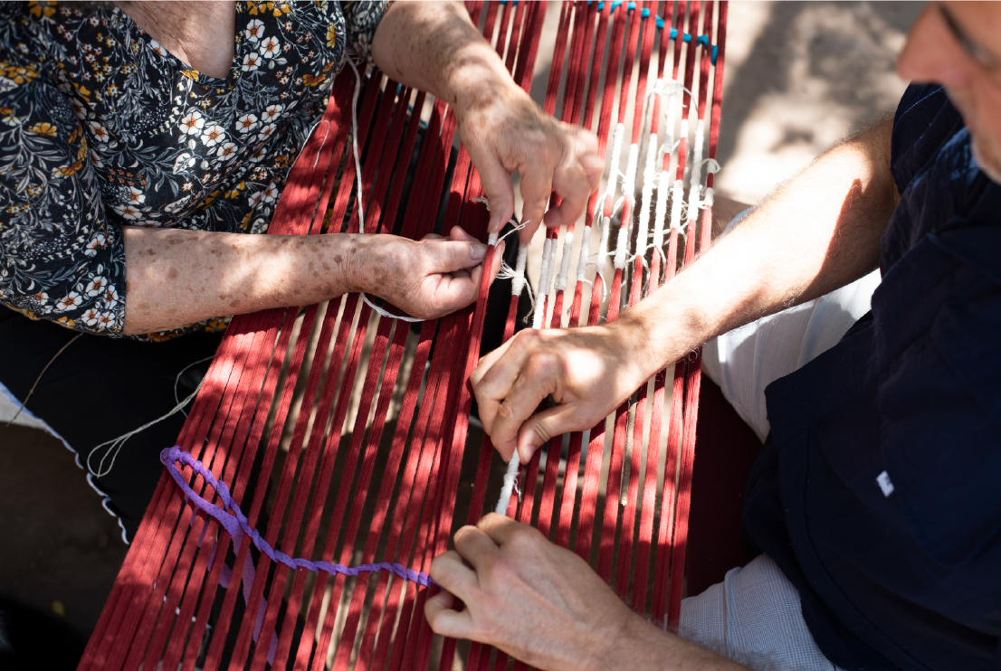 Realización de poncho de guarda atada tejido en alpaca. Proceso de aprendizaje, 15 de enero al 10 de febrero del 2025. Londres, Catamarca. Performance junto a Selva Díaz.